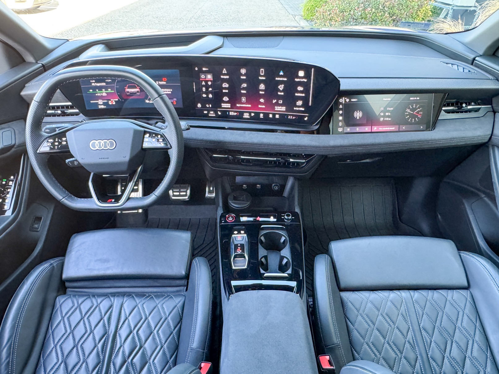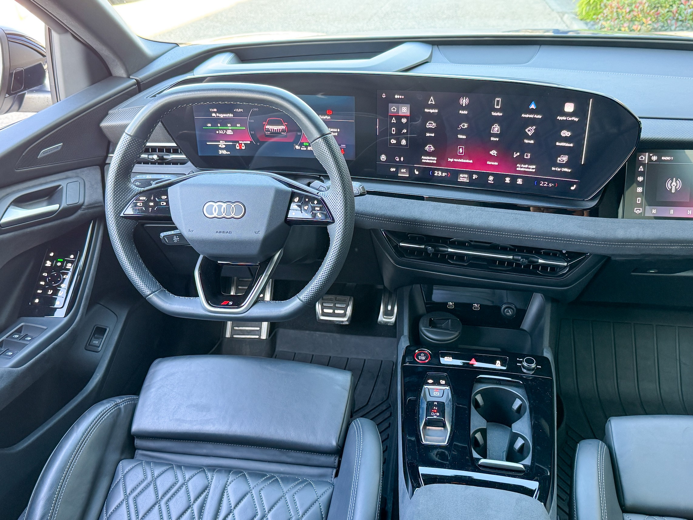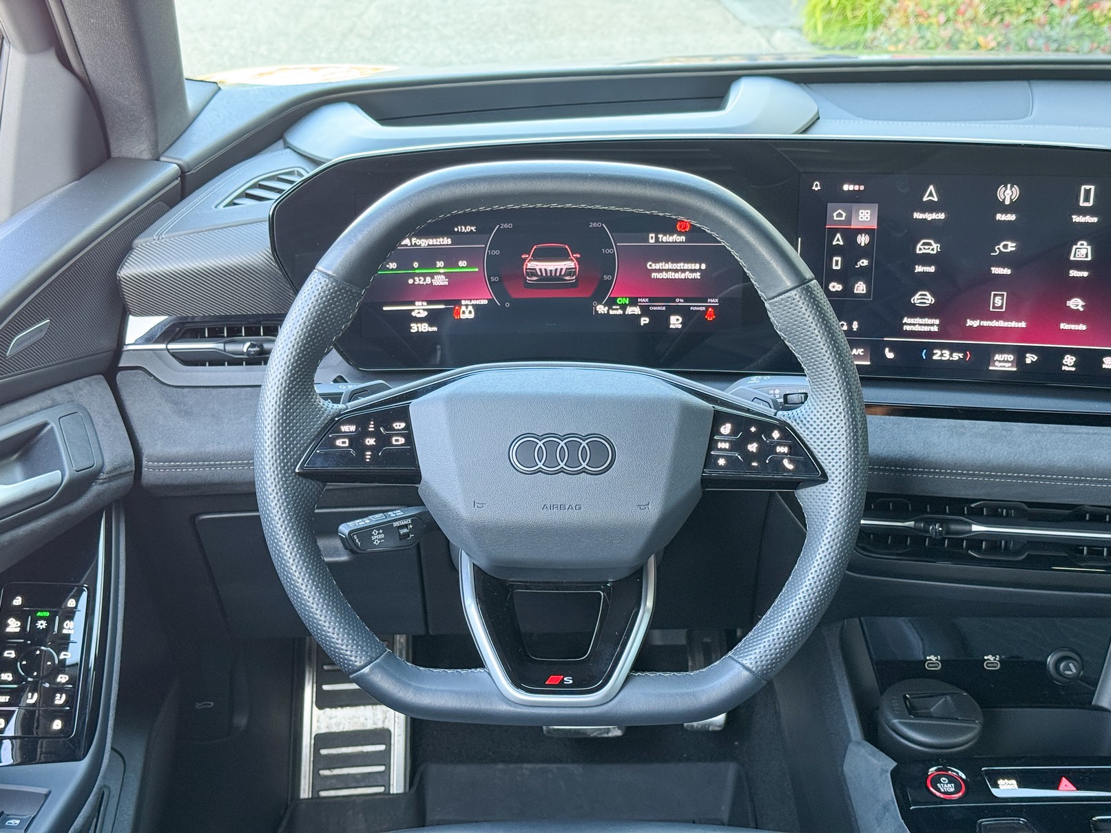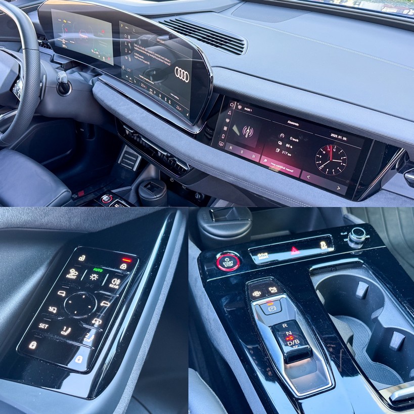 A belső térben az Audi prémium anyaghasználata tűnik ki. A legmagasabb minőségű bőr, a finom fémdíszítések, valamint a kényelmes sportülések egy olyan környezetet teremtenek, amelyben minden részlet a vezető és az utasok igényeire van szabva. Azonban egyesek szerint a beltér túlságosan letisztult hatást kelt. Bár a minimalista design vonzó lehet, az Audira jellemző magas minőségű fizikai gombok és szabályzók hiányozni fognak, különösen olyan alapvető funkciók esetében, mint a hőmérséklet szabályozása vagy az ülésfűtés beállítása. Ezek a funkciók kizárólag a központi kijelzőn keresztül érhetők el, ami némi megszokást igényel a vezetés során. De szerencsére kedvencemet a többfunkciós hangerőszabályzó potmétert meghagyták fizikai tekerőnek.