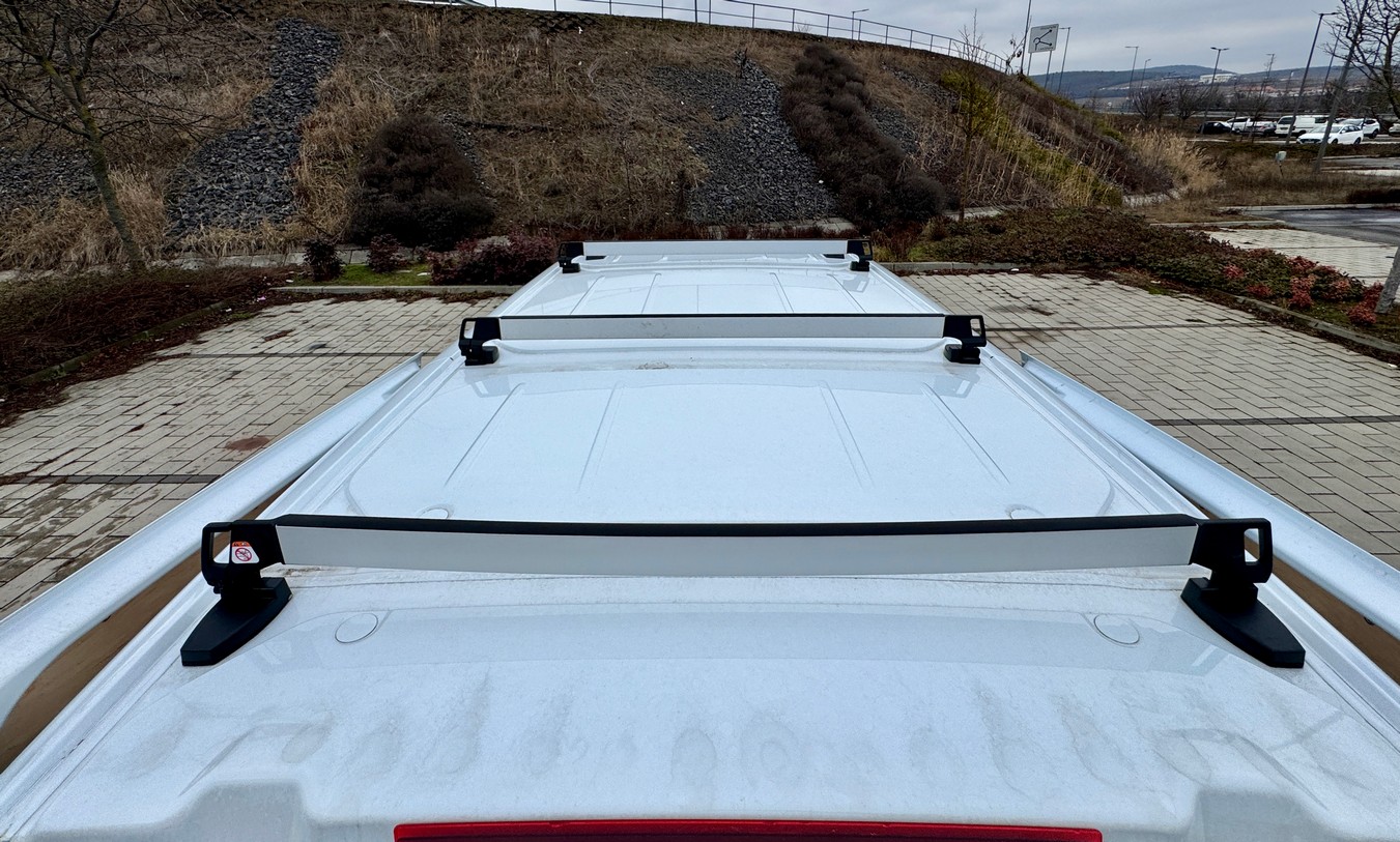 - Zseniális tetőcsomagtartó rendszer: A létrák és csövek rögzítése pillanatok műve, a rendszer stabil és az autó aerodinamikájához tervezett.