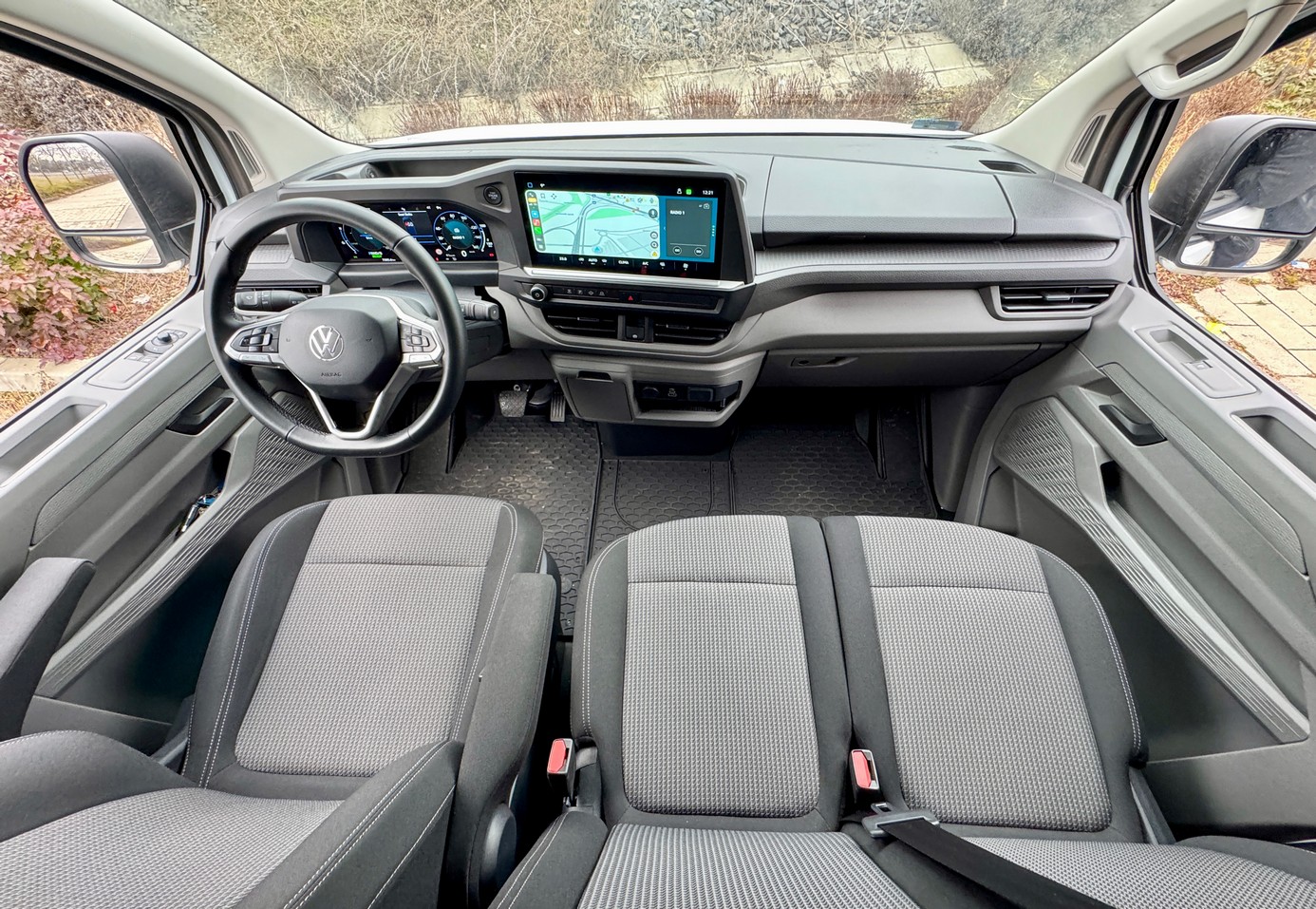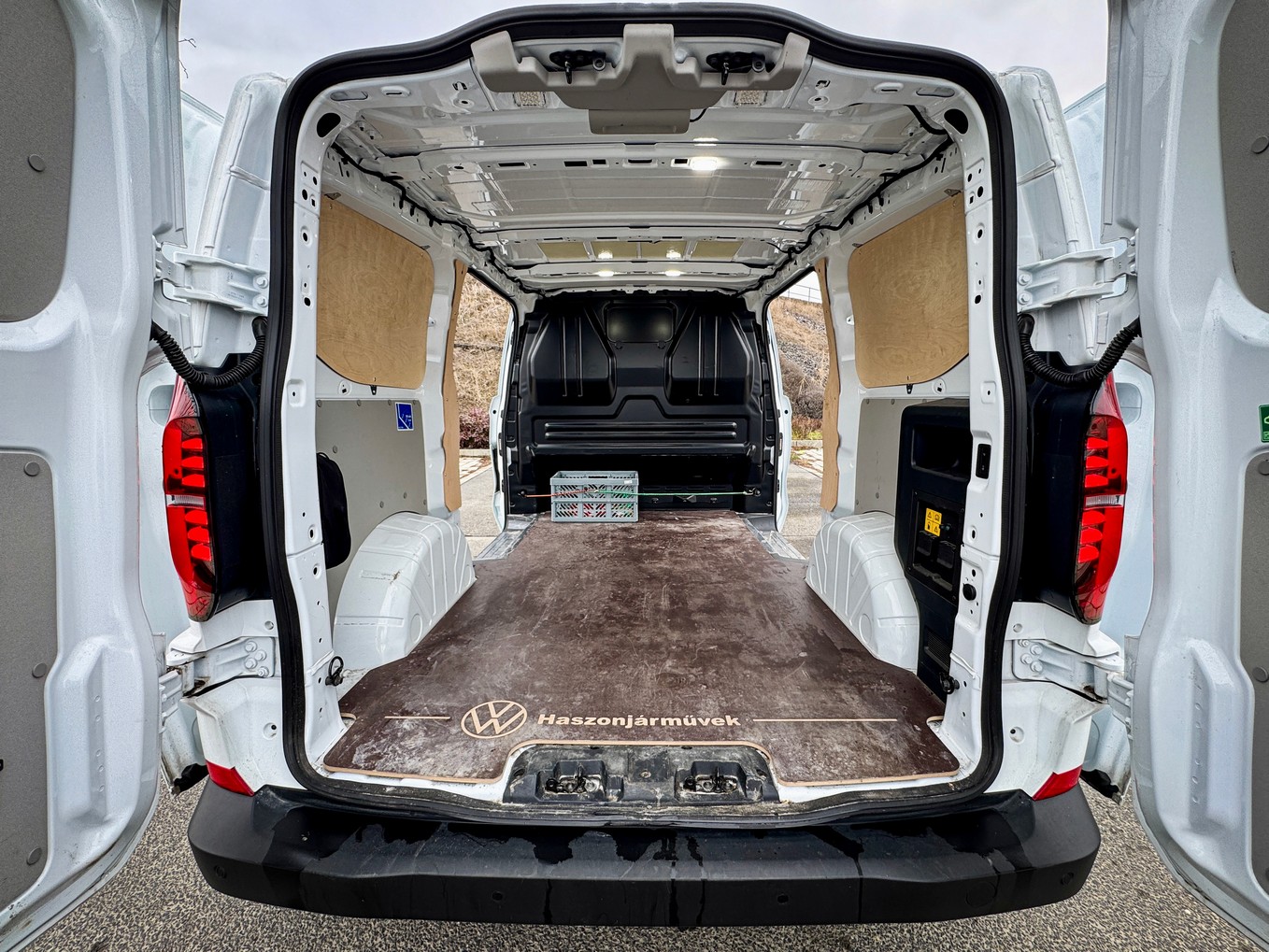 A mellékelt képeken látható tesztautó hű maradt a Transporter-hagyományokhoz. A letisztult fehér fényezés és a sötétített fényszórók modern, bizalmat ébresztő megjelenést kölcsönöznek. A beltérben és a raktérben folytatódik a német precizitás: a képeken látható „VW Haszonjárművek” felirattal ellátott burkolat rendkívül strapabíró, a raktér pedig (karosszériaváltozattól függően) 5,8 és 9 köbméter közötti térfogatával minden szerszámot elnyel.