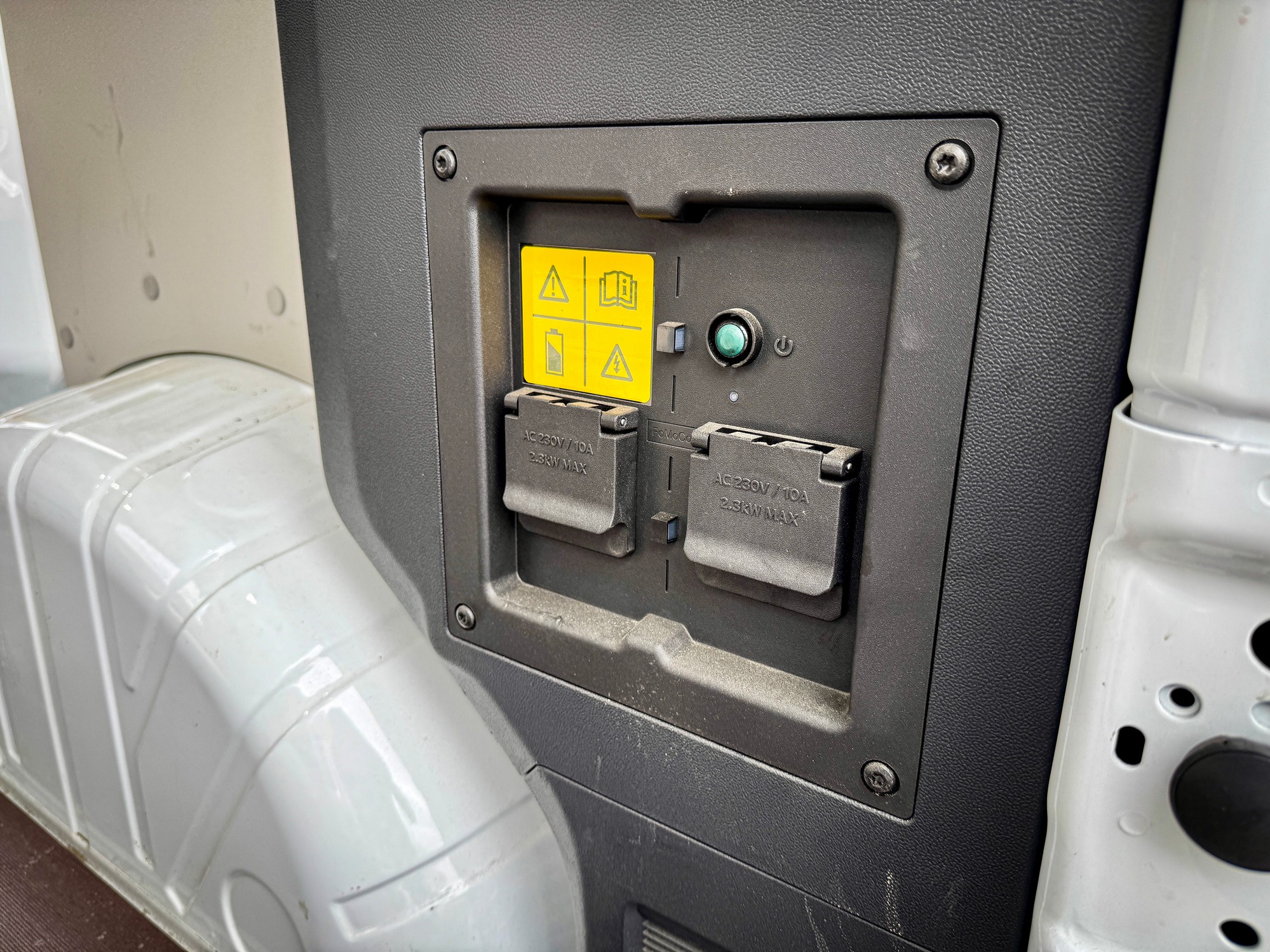 - A mozgó áramforrás (ProPower Onboard): Ez az autó egyik legnagyobb dobása. A raktérben lévő 230V-os (10A-es) konnektorok segítségével az autó egyfajta óriási powerbankként funkcionál. Amíg te a helyszínen dolgozol, a szerszámgépeid akkumulátorai az autóról töltődnek. Nincs többé szükség aggregátorra.