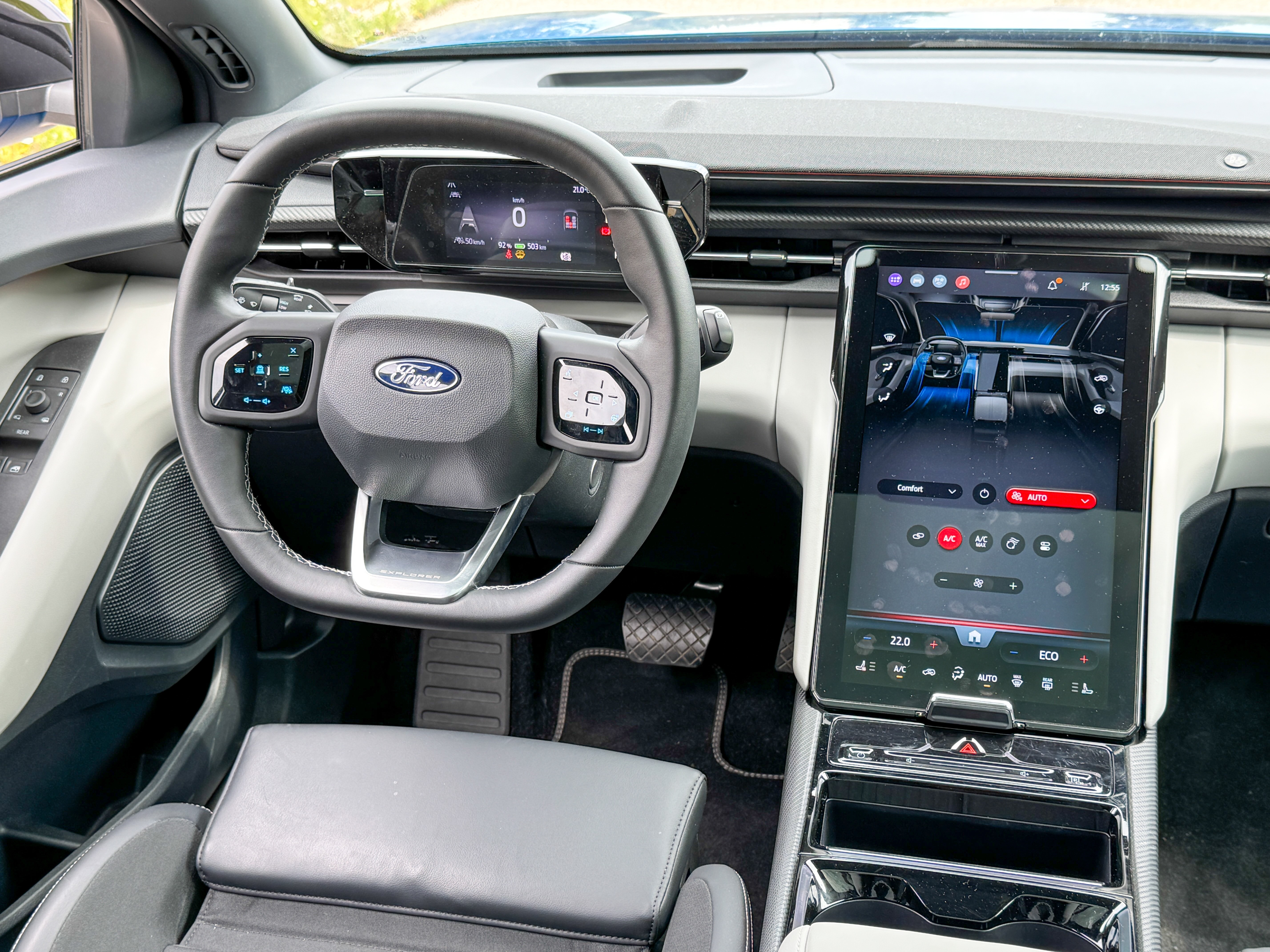 A tesztelt Explorer Extended Range változat 77 kWh-s akkumulátorral rendelkezik, ami WLTP szerint akár 500 km-es hatótávot is ígér. A valóságban vegyes használat mellett 400-450 km körülire számíthatunk, ami az európai viszonyok között tökéletesen elfogadható.