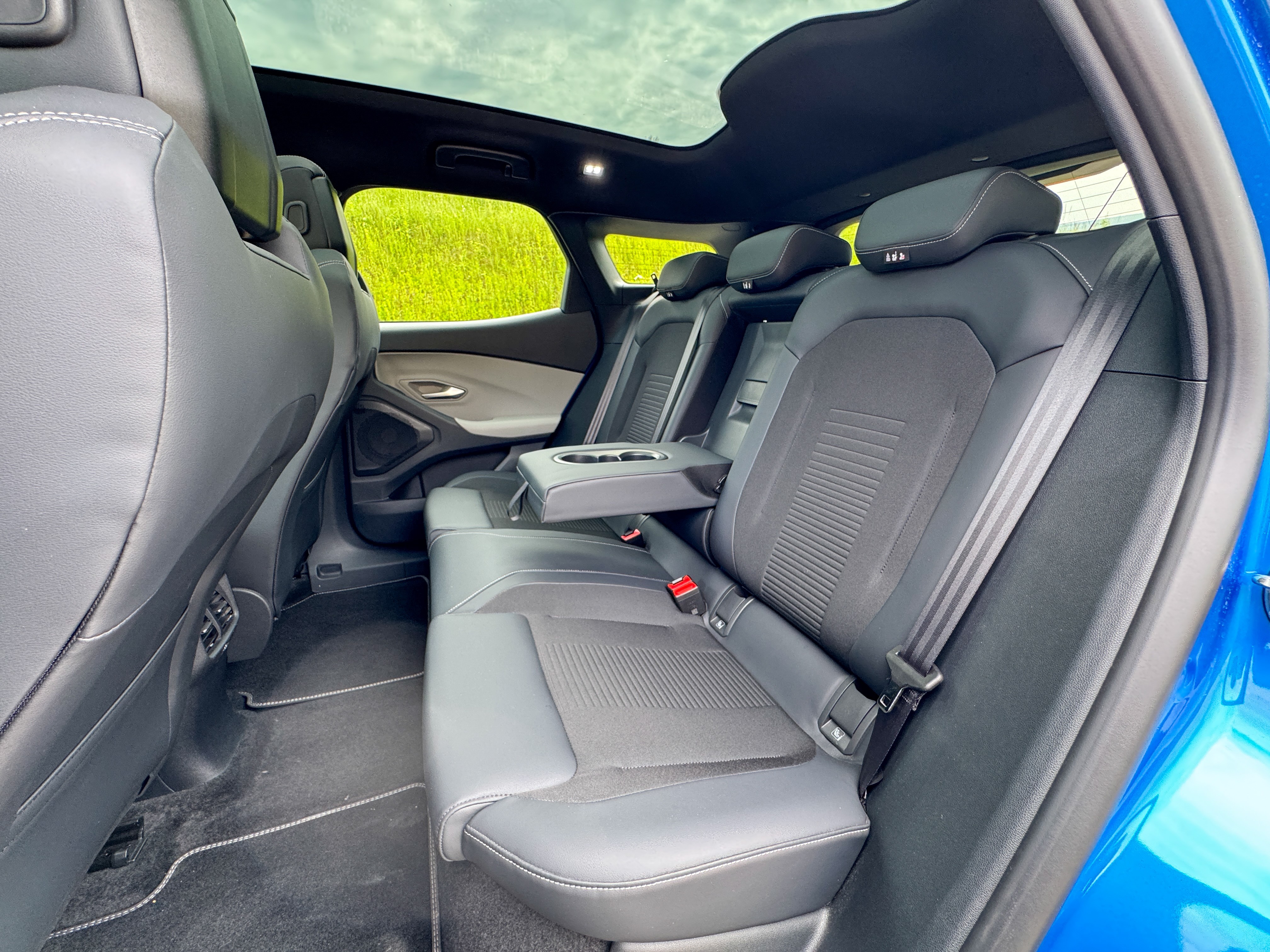 Az ülések kiválóan tartanak hosszú utakon is, és a hátsó utasteret is bővítették, így akár három gyerekülés is elfér. A csomagtér 470 literes, ami az elektromos SUV-k esetén nem kiemelkedő, de ha lehajtjuk a hátsó üléseket, akár 1600 liter is elérhető.