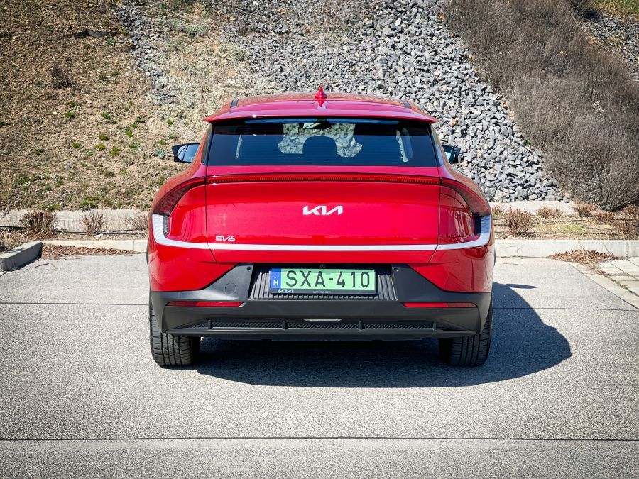 A technikai részleteken kívül az EV6 külső megjelenésében is jelentősen különbözik a megszokott formavilágtól. Talán nem olyan mértékben, vagy másképpen, mint a minimálisan kisebb konszerntárs és közös alapokkal rendelkező Ioniq 5, de kimondhatjuk erre a modellre is, hogy formabontó, sőt azt is, hogy megosztó. Nem a megszokott módon szép a külseje, annyira más, mint amennyire az elektromos autók mások. Digitális, furcsa karosszériaelemek, amiket eddig nem láttunk korábban. Nézzük csak a hátsó részét, ami talán mind közül a leginkább egyedi. A vörös fénycsíkot és az ide-oda hullámzó ívekből előkerülő hátsó lámpatestet. Azt hihetjük, hogy a fekete „érdekes” műanyag mellett az ezüstnek sincs funkciója, de nem, az bizony világít. Teljesen a lökhárító alatt is vannak fények, egyedi formák. Az egész vonalvezetés mintha kicsit hasonlítana az Aston Martin DBX-re, nekem tudj isten miért, de tetszik. Jobb hátul van a töltőrész ajtaja, amely érintésre elektronikusan nyit és zár.