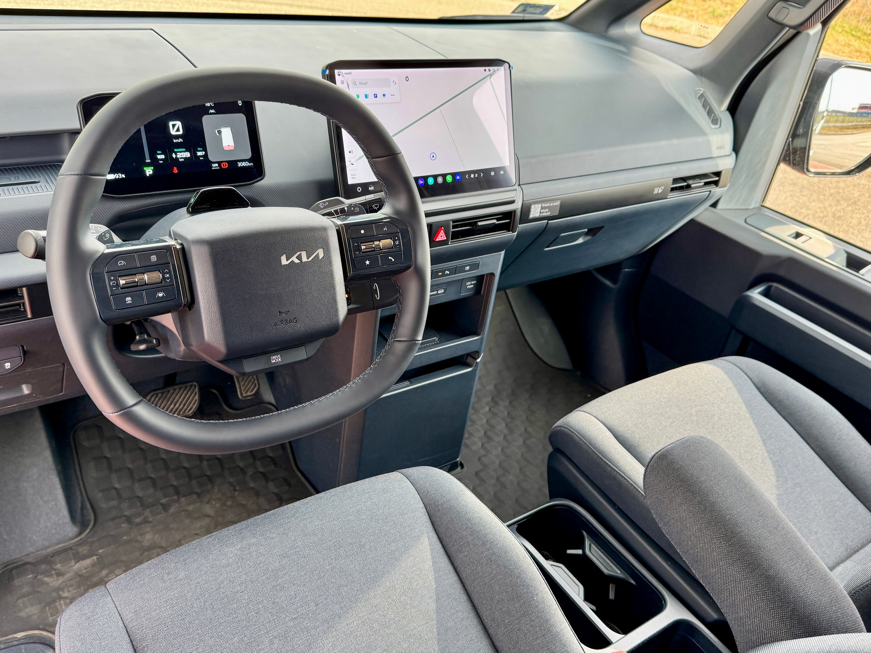 A PV5-be beülve azonnal feltűnik a tágas, "levegős" kabin. Nincs kardánalagút, a padló teljesen sík, így akár az anyósülés felőli oldalon is simán kiszállhatunk, ha szűk a parkolóhely. A kormányzás könnyű, a kilátás a hatalmas ablakoknak köszönhetően pedig kategóriaelső. A zajszigetelés annyira jól sikerült, hogy városi tempónál síri csend honol a fülkében – nincs a furgonokra jellemző "dobozhang" vagy zörgés.