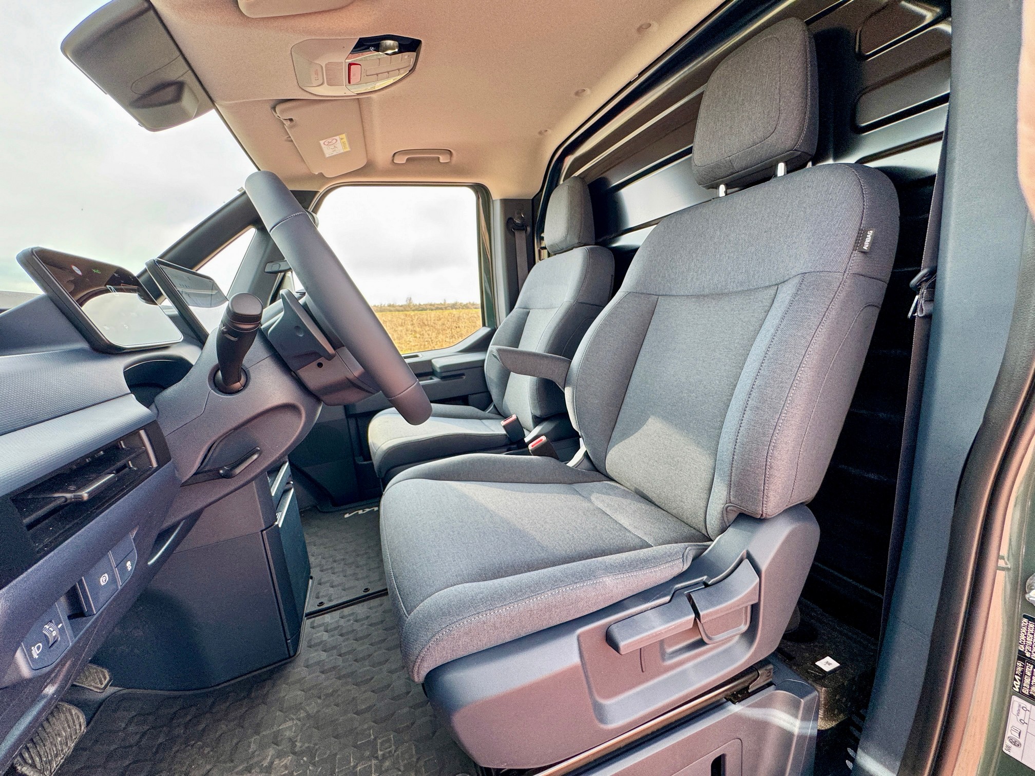 - Alacsony küszöb: A mindössze 419 mm-es rakodóperem (köszönhetően az E-GMP.S platformnak) megváltás a futárok derekának a napi többszázadik ki-be pakolásnál.