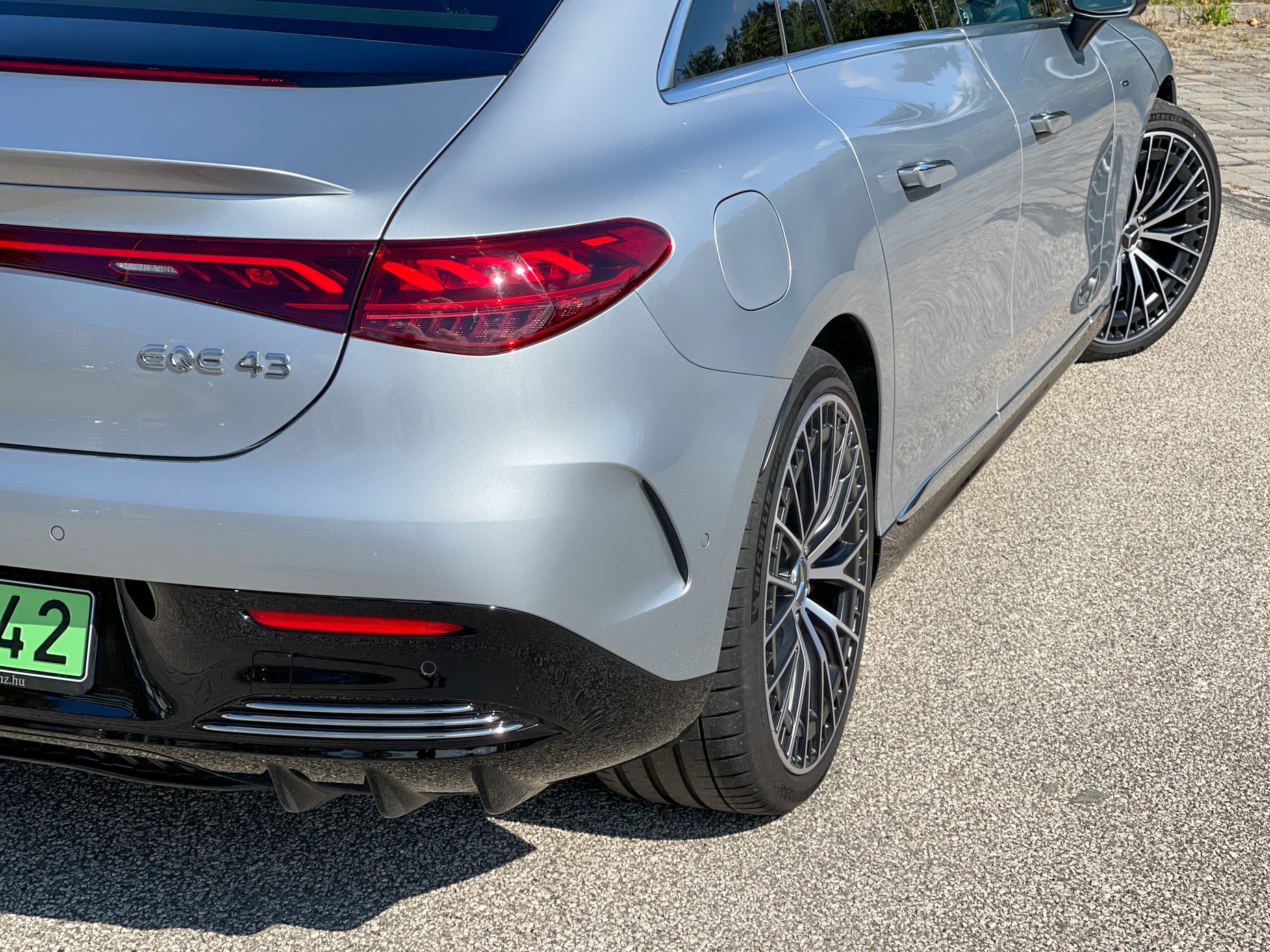 Az EQE-ben az akkumulátor is valamivel kisebb, mint az EQS-ben, hiszen nettó 90kW kapacitással rendelkezik. A gyári adat szerint 533 kilométer megtételére képes a 43 AMG, amely a saját tapasztalataim szerint valójában ennél jóval kevesebb, de még bőven az élhető szinthez tartozik. Óvatos használat mellett 22-23kW-ot fogyasztott, de amikor jobban a lovak közé csaptunk, akkor simán 30kW fölé emelkedett a fogyasztás. Autópályán 28kW-os fogyasztással kell számolni, ha a megengedett sebesség felső határán használjuk. Jó villanyautósként, 90-100-as tempó mellett persze tartható a 22kW. Ez összeségében azt jelentette, hogy 400 körüli valós hatótávolsággal számolhatunk, ami nem tekinthető rossznak egy 2,5 tonnás tömegű autótól.