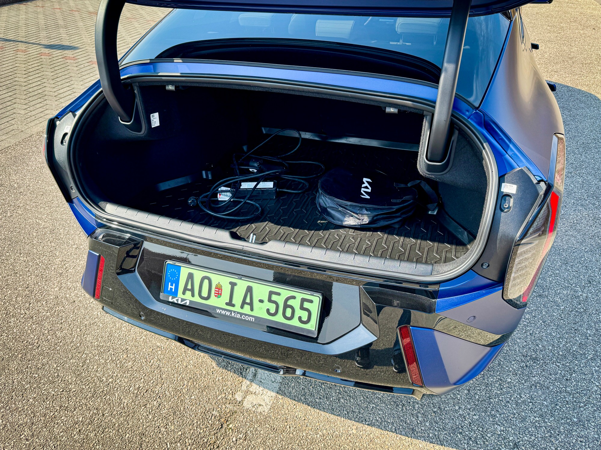 Azonban, ha őszinte akarok lenni, egy dolog szúrja a szememet: a nyílás. A csomagtér ugyanis hagyományos, szedános módon nyílik. Nagy kár, hogy a tervezők kihagyták ezt a ziccert, és nem az ablakkerettel együtt nyíló, hatalmasra táruló – kvázi liftback – ajtót választották. A praktikum így egy picit csorbát szenved, hiszen a magasabb tárgyak behelyezése a szűkebb nyílás miatt nehézkesebb. Ez legyen a legnagyobb bűne egy ilyen formabontó, technológiai csodaautónak!